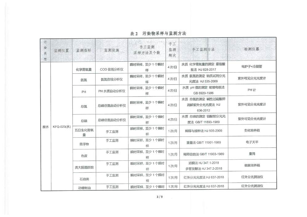 PH 6.54 6-9 92 100 COD 19.27 30 92 100 BOD5 2.31 6 92 100 SS 2.57 5 92 100 TP 0.15 0.3 92 100 TN 5.99 10 92 100 NH4-N 0.41 1.5(3.0) 92 100 色度 2.00 15 92 100 糞大腸菌群 51.87 1000 92 100 石油類 0.03 0.5 3 100 動植物油 0.05 1.0 3 100 陰離子表面活性劑 0.160 0.3 3 100 六價鉻 0.002 0.05 1 100 總鉻 0.015 0.1 1 100 總鎘 0.00014 0.005 1 100 總砷 0.0008 0.05 1 100 總鉛 0.0004 0.05 1 100 總汞 0.00037 0.001 1 100 出水達(dá)標(biāo)率100% 2025年4季度 排放量(噸) 1 化學(xué)需氧量 2 氨氮(NH3-N) 3.12 3 總氮(以N計) 45.55 4 總磷(以P計) 1.14 3.防治污染設(shè)施的建設(shè)和運(yùn)行情況